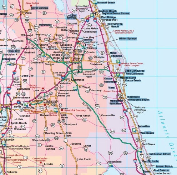 Deciding that the territory was too large to. Detailed road map of central and eastern Florida featuring shopping malls schools points of interest and fully indexed.